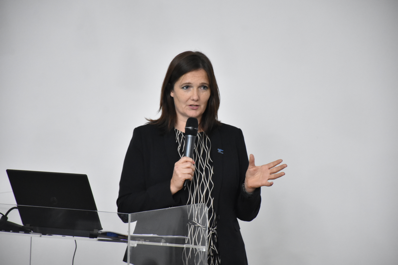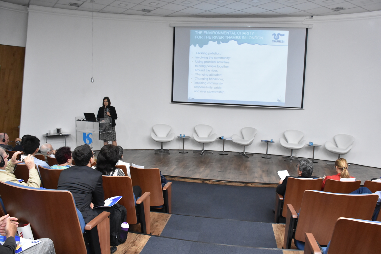 Geógrafa Emma Harrington de Thames21, presentando “Consideraciones sobre la descontaminación del Rio Támesis”.