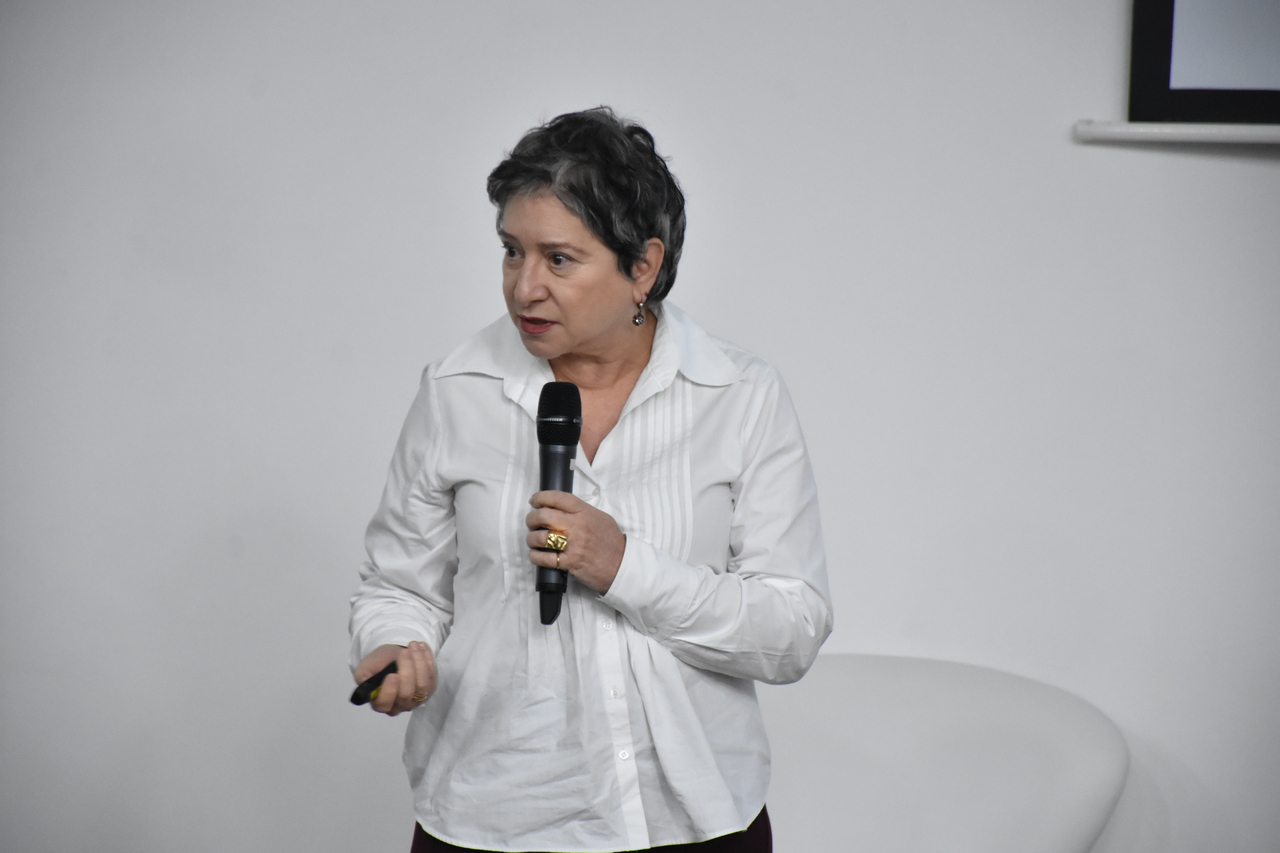 Geógrafa Stella Goldenstein presentando “Repensar la ciudad, el territorio y sus Aguas”.