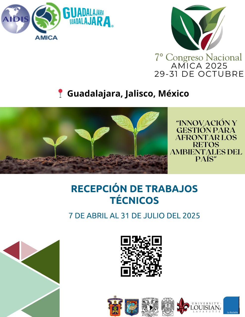 La Asociación Mexicana de Ingeniería, Ciencia y Gestión Ambiental (AMICA) ha anunciado oficialmente la convocatoria para la recepción de trabajos técnicos rumbo a su 7° Congreso Nacional, que se celebrará del 29 al 31 de octubre de 2025 en la ciudad de Guadalajara, Jalisco, México.