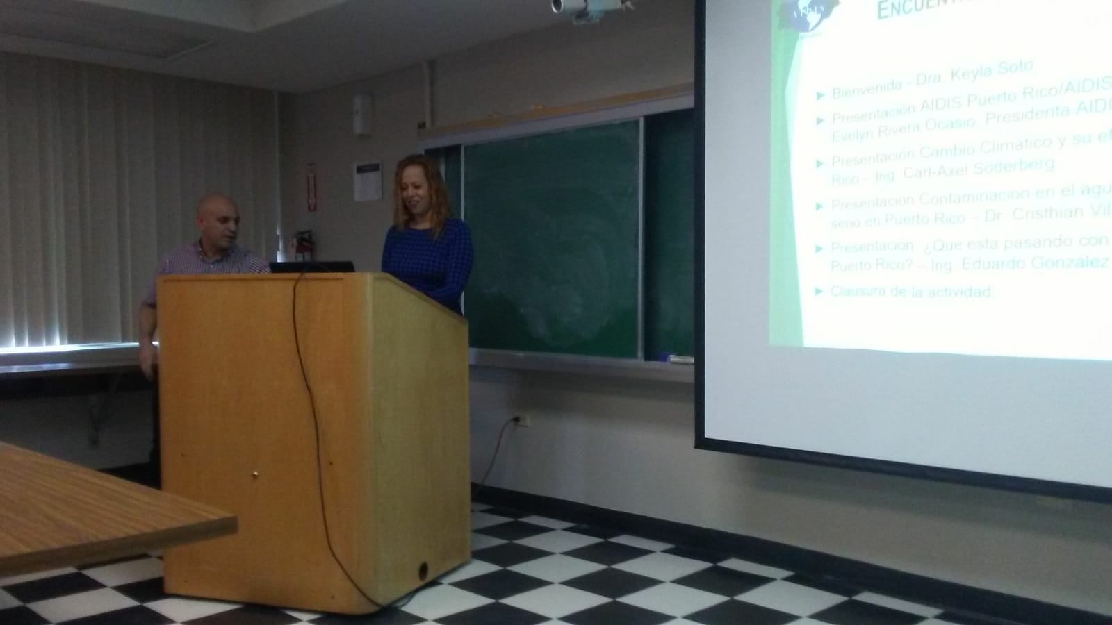 Felicitaciones al Comité AIDIS-Puerto Rico Joven. Una concurrida actividad en la Universidad de Puerto Rico. Los estudiantes sub-graduados y graduados escucharon charlas sobre el Cambio Climático y su efecto en Puerto Rico por Ing. Carl Soderberg; Contaminación en el agua: Un problema serio en Puerto Rico por el Dr. Cristhian Villalta; y ¿Que esta pasando con la basura en Puerto Rico? por Ing. Eduardo Gonzalez.