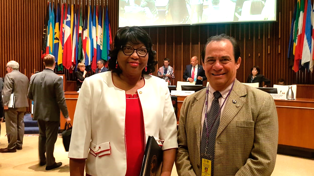 Dra. Carissa Etienne, Directora General de OPS y el Ing. Martín Méndez, Presidente de AIDIS