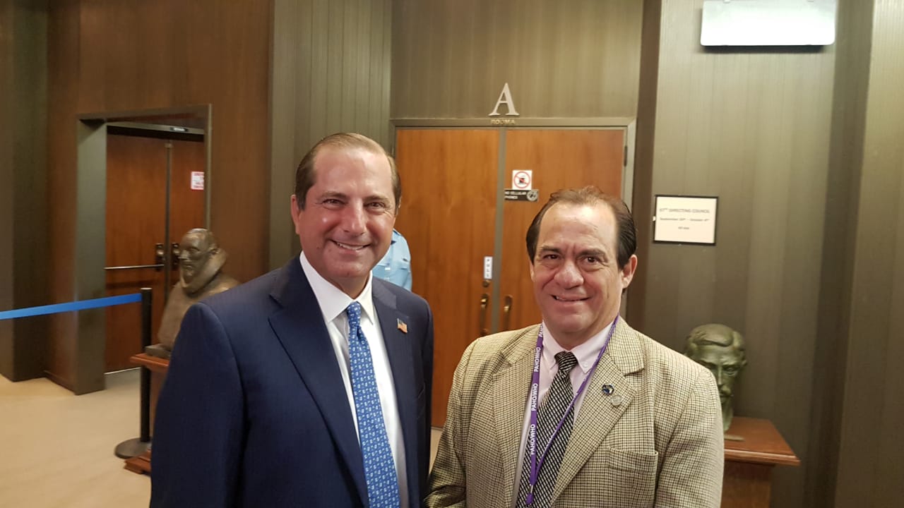 Sr. Alex M. Azar II. Secretario del Departamento de Salud y Servicios Sociales de los Estados Unidos de América e Ing. Martín Méndez Presidente de AIDIS