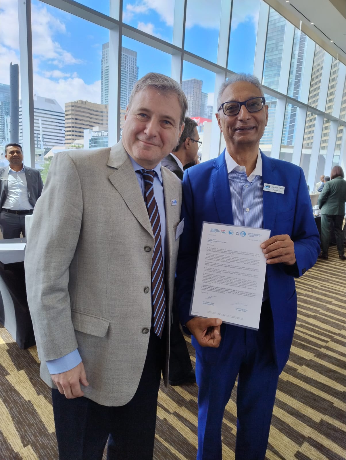 En la imagen, el Ing. Christian Taylor junto al nuevo presidente de IWA, Prof. Hammanth Kasan, invitado a participar del 39º Congreso Interamericano de AIDIS en Lima en noviembre próximo.