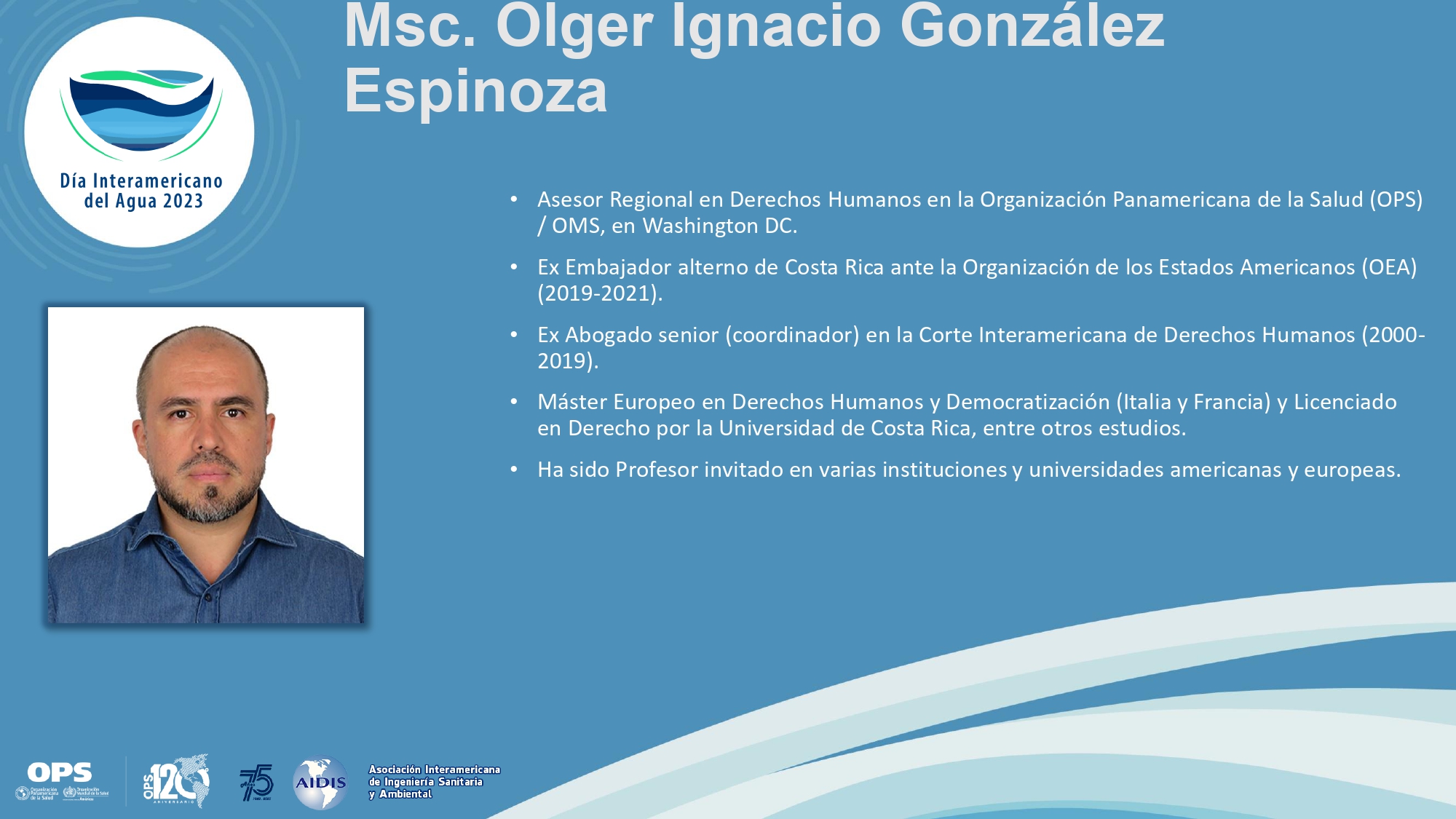 | 09:45 | El Agua en Conflicto: Derechos Humanos y Gobernabilidad Democráctica | Dr. Olger González | Asesor Regional en Derechos Humanos DHE -OPS |