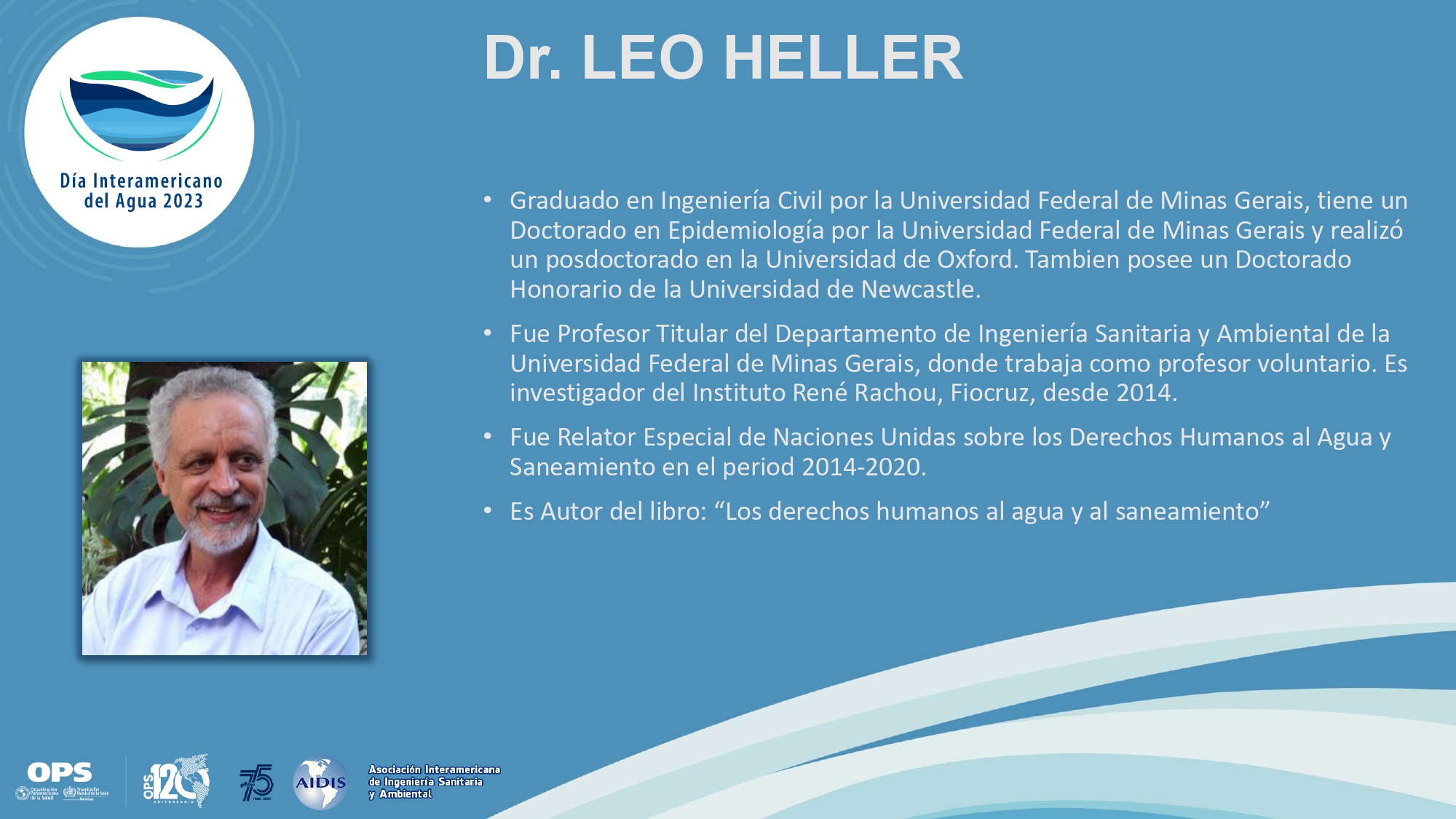 | 10:10 | La Agenda 2030 para el abastecimiento del agua, el saneamiento y la higiene en ALC: Una mirada a partir de los derechos humanos | Dr. Leo Heller | Ex Relator Especial de las Naciones Unidas sobre los Derechos Humanos al Agua y al Saneamiento |