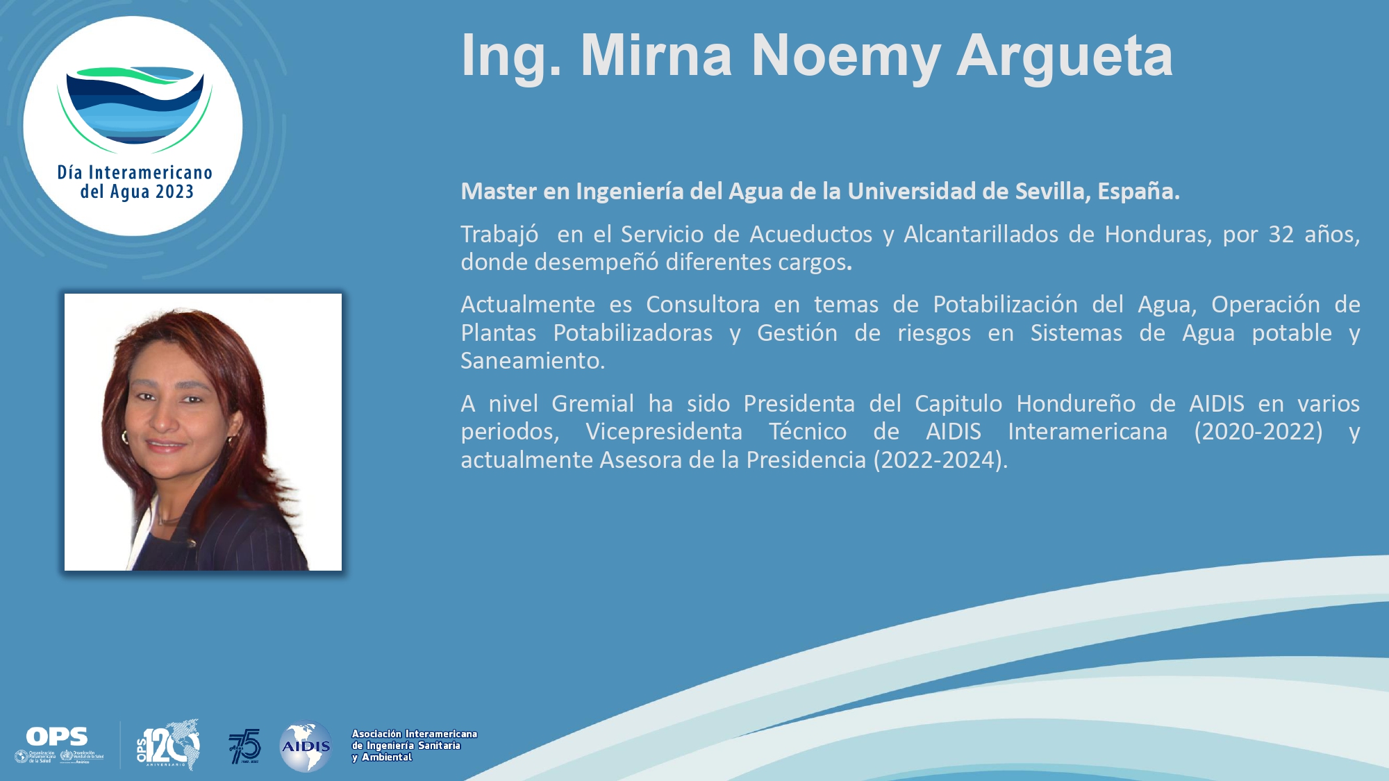 | 11.00 | Conflictividad, Agua y Saneamiento, Gobernabilidad y Democracia -Honduras | Msc. Lic. Mirna Arguetta | Asesora Presidencia AIDIS InterAmericana |