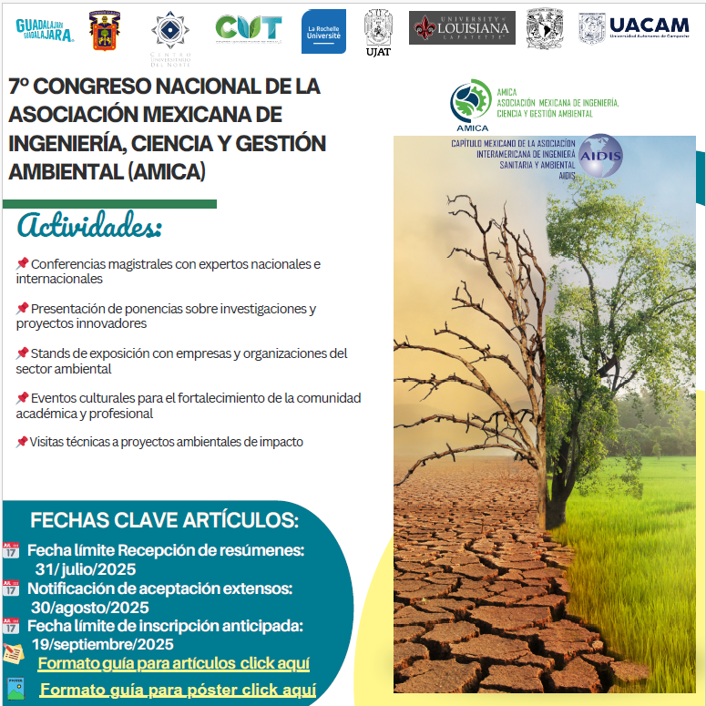 AMICA, el capítulo mexicano de AIDIS, organiza este diplomado que está dirigido al público en general con interés o experiencia en temas ambientales, e iniciará el próximo 7 de julio de 2025.