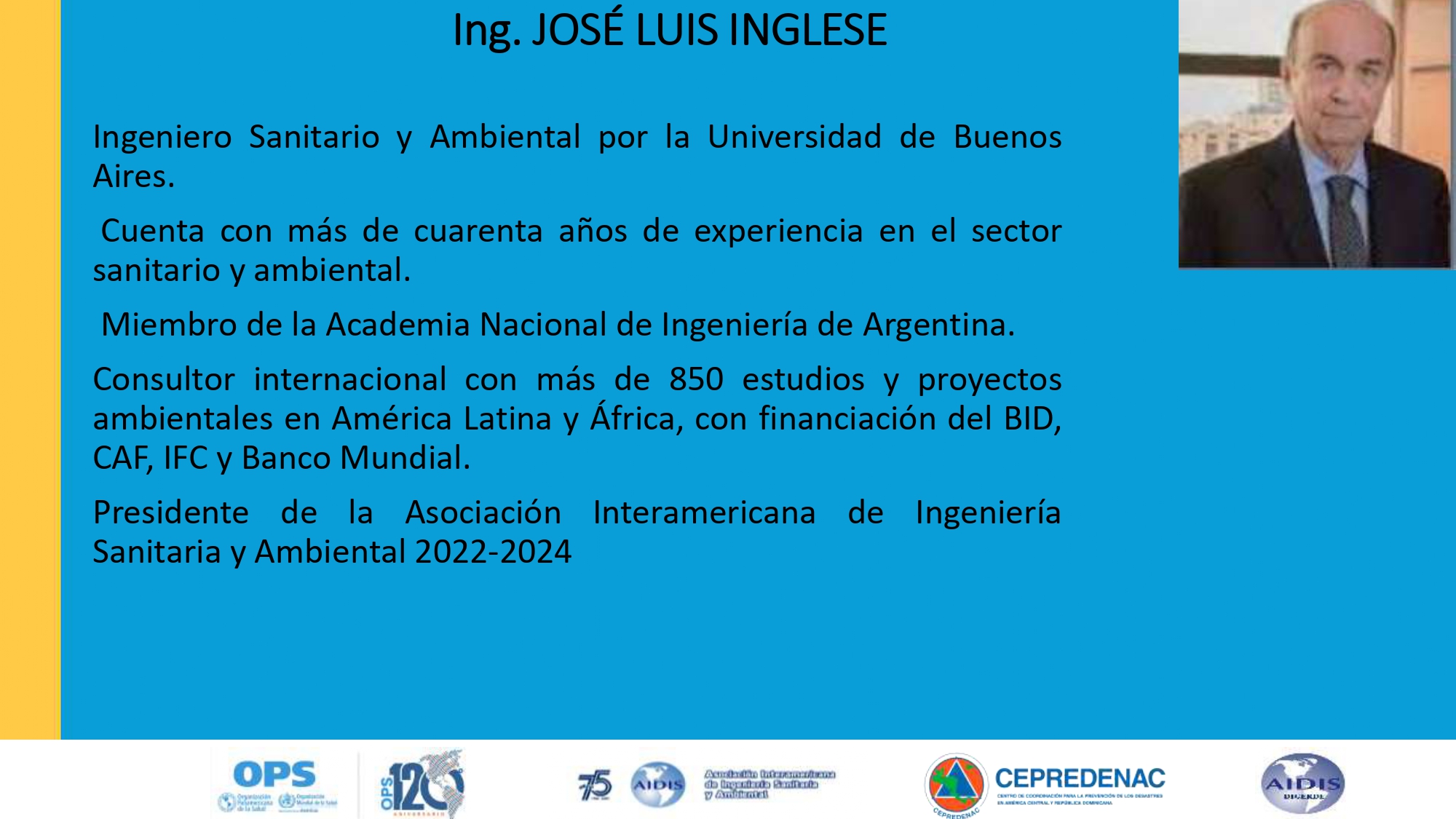 | 11:00 | Inauguración del Webinario | Ing. José Luis Inglese | Presidente de AIDIS |