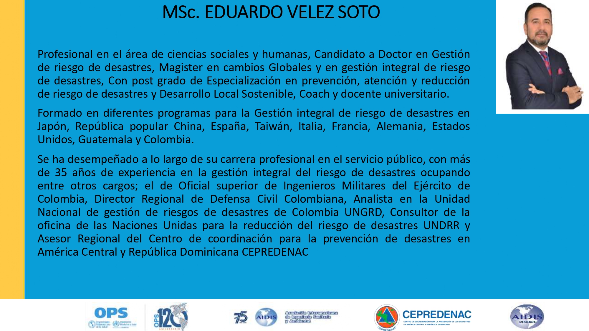 | 11:45 | CEPREDENAC y la gestión de riesgos frente a desastres. | Lic. Eduardo Vélez | CEPREDENAC |