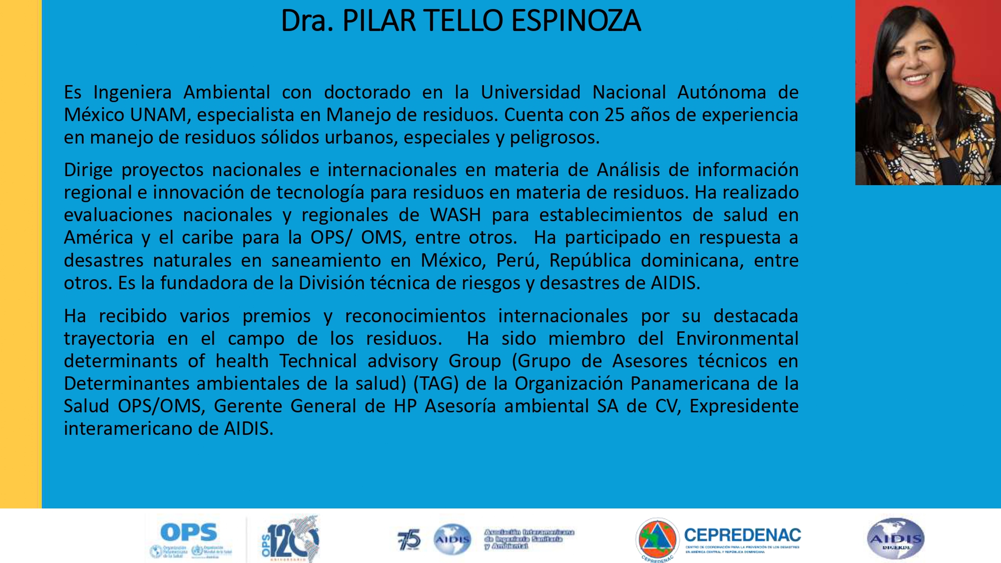 | 12:25 | Lecciones aprendidas principales desastres en México. | Dra. Pilar Tello | Expresidenta de AIDIS |
