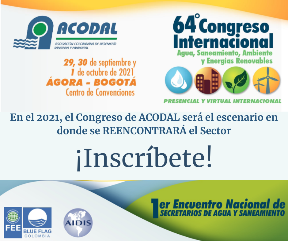 Las inscripciones para el Congreso Internacional de Agua, Saneamiento, Ambiente y Energías Renovables de ACODAL  ya iniciaron. No te pierdas este evento!