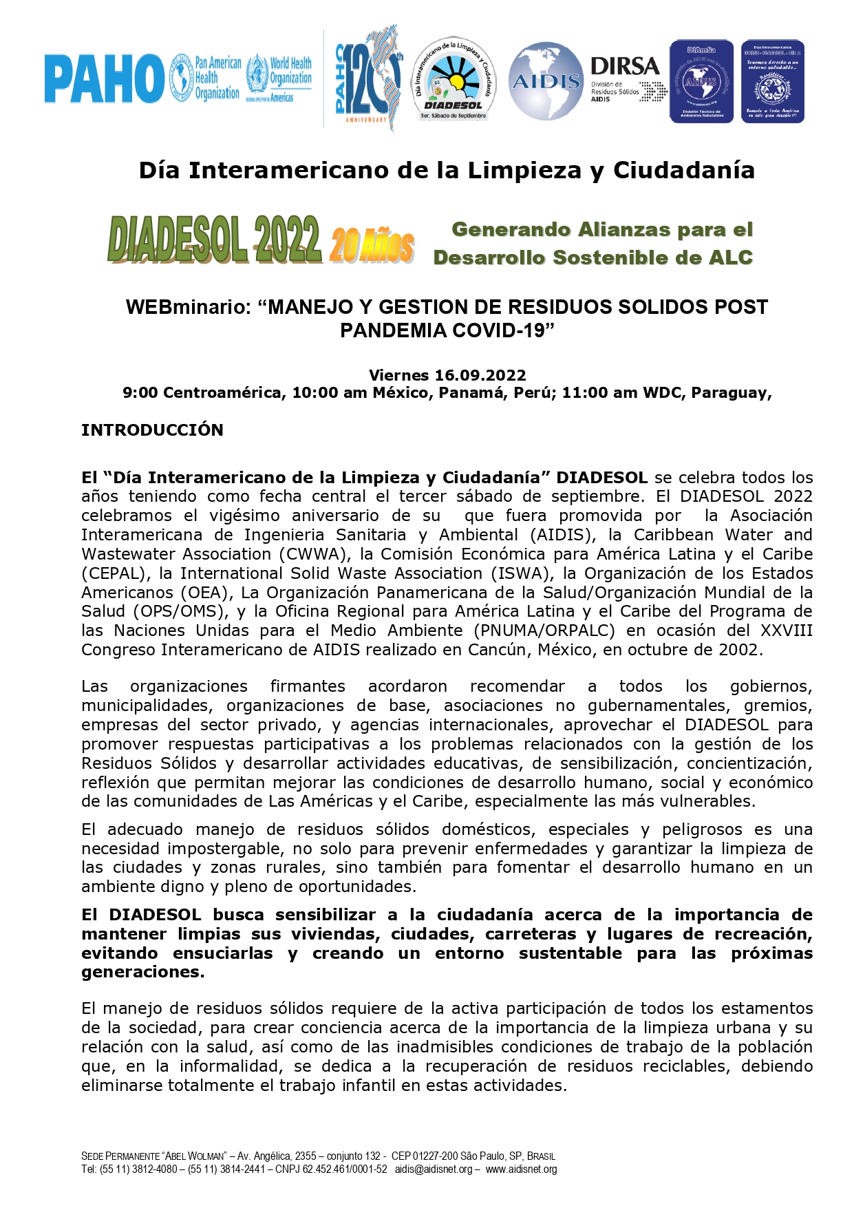 DIADESOL 2022 – MANEJO Y GESTION DE RESIDUOS SOLIDOS POST PANDEMIA COVID-19