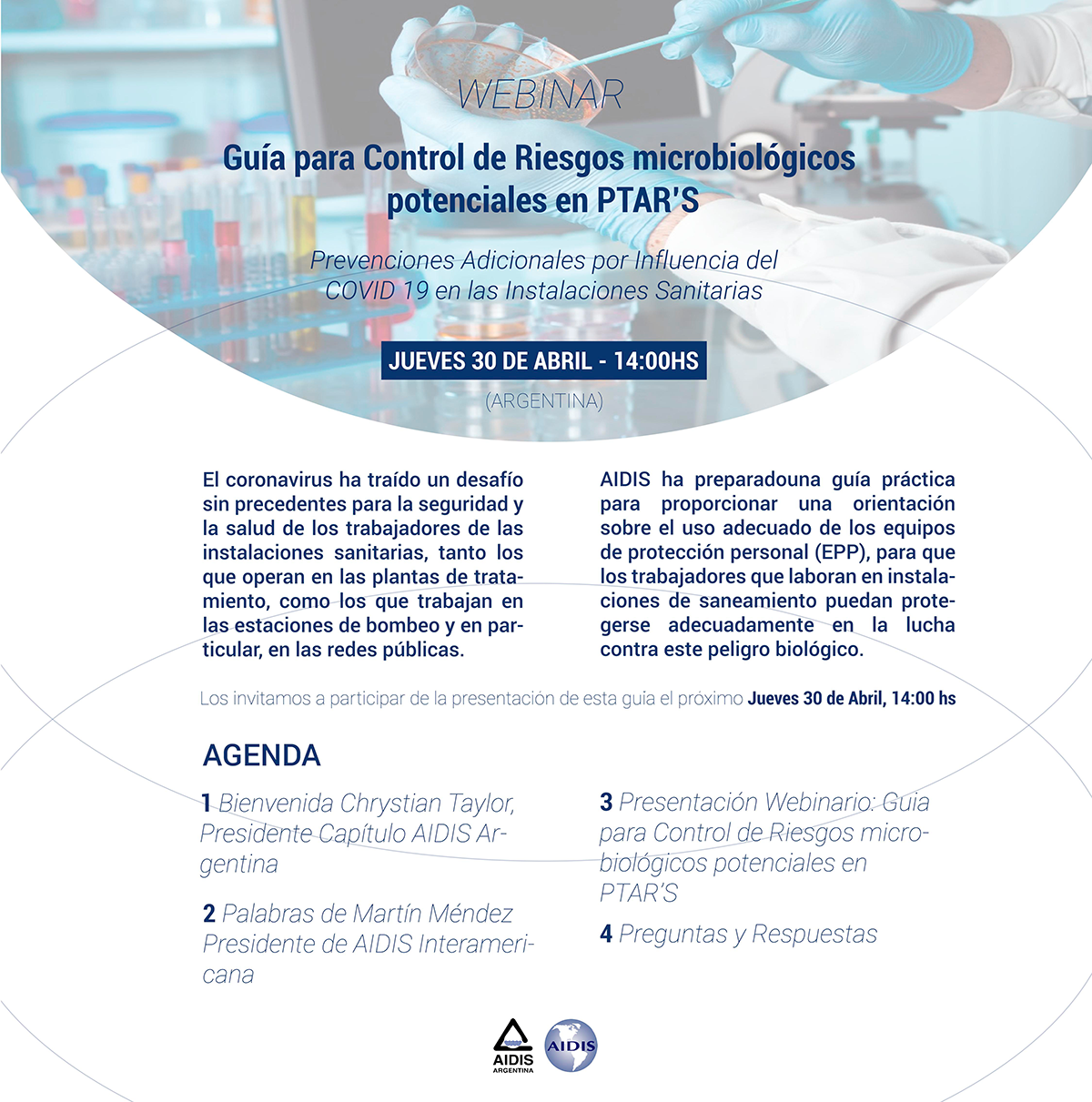 Webinar «GUÍA PARA CONTROL DE RIESGOS MICROBIOLÓGICOS POTENCIALES EN PTAR´S» realizado el pasado jueves 30/04 a las 14:00 (hora argentina).