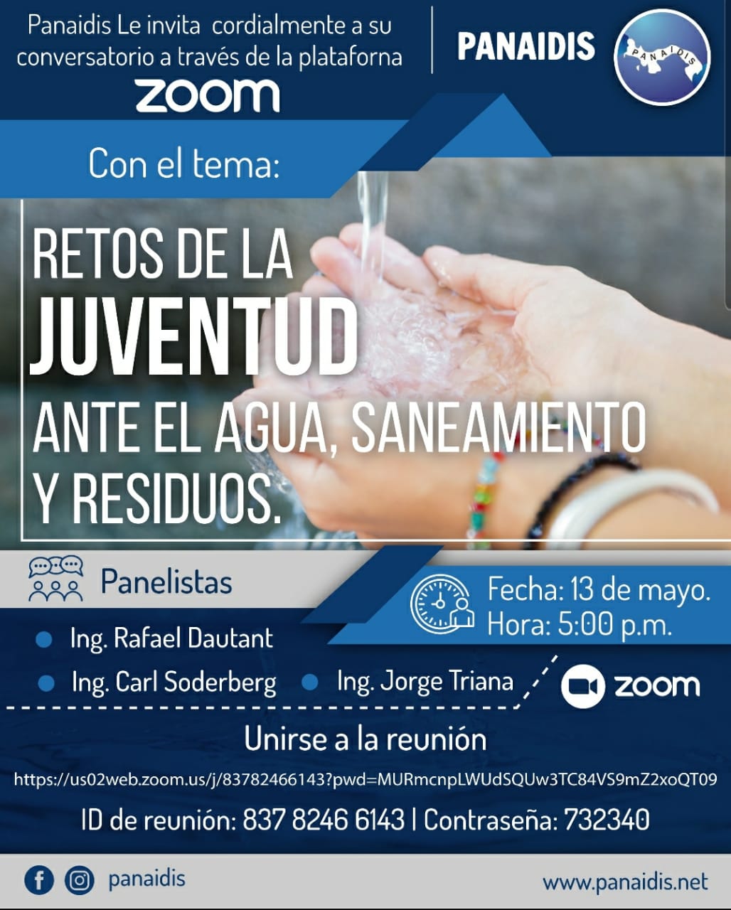 En este tiempo en que debemos quedarnos en casa y cuidarnos. Implementamos webinars en diferentes temas de relevancia en el sector de agua y saneamiento, es por eso que les invitados a que participen de nuestro siguiente Webinar Retos de la Juventud Ante el Agua, Saneamiento y Residuos, a llevarse a cabo el 13 de mayo a las 5:00 PM hora de Panamá.