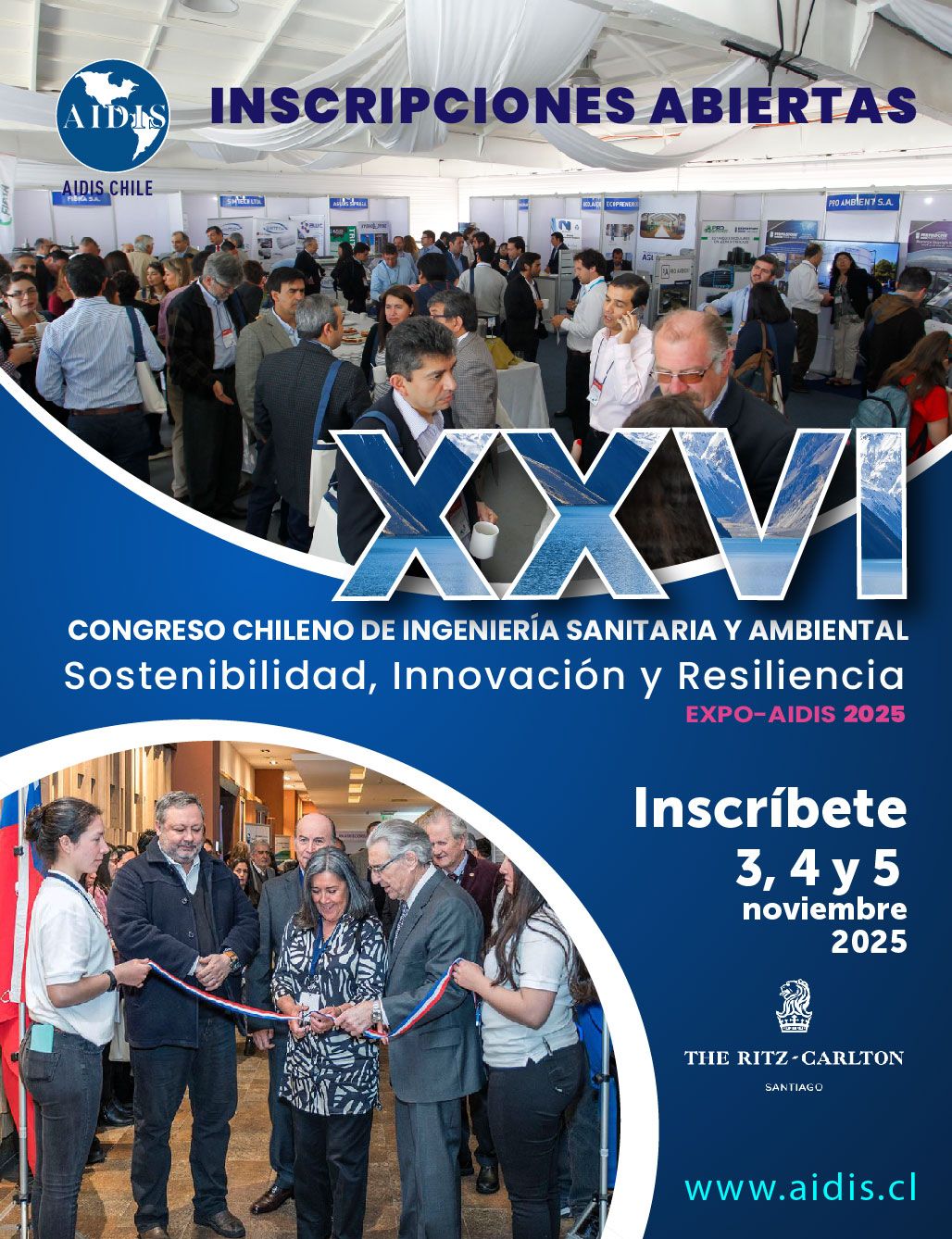 Inscripciones: https://www.aidis.cl/eventos/xxvi-congreso-chileno-de-ingenieria-sanitaria-y-ambiental/