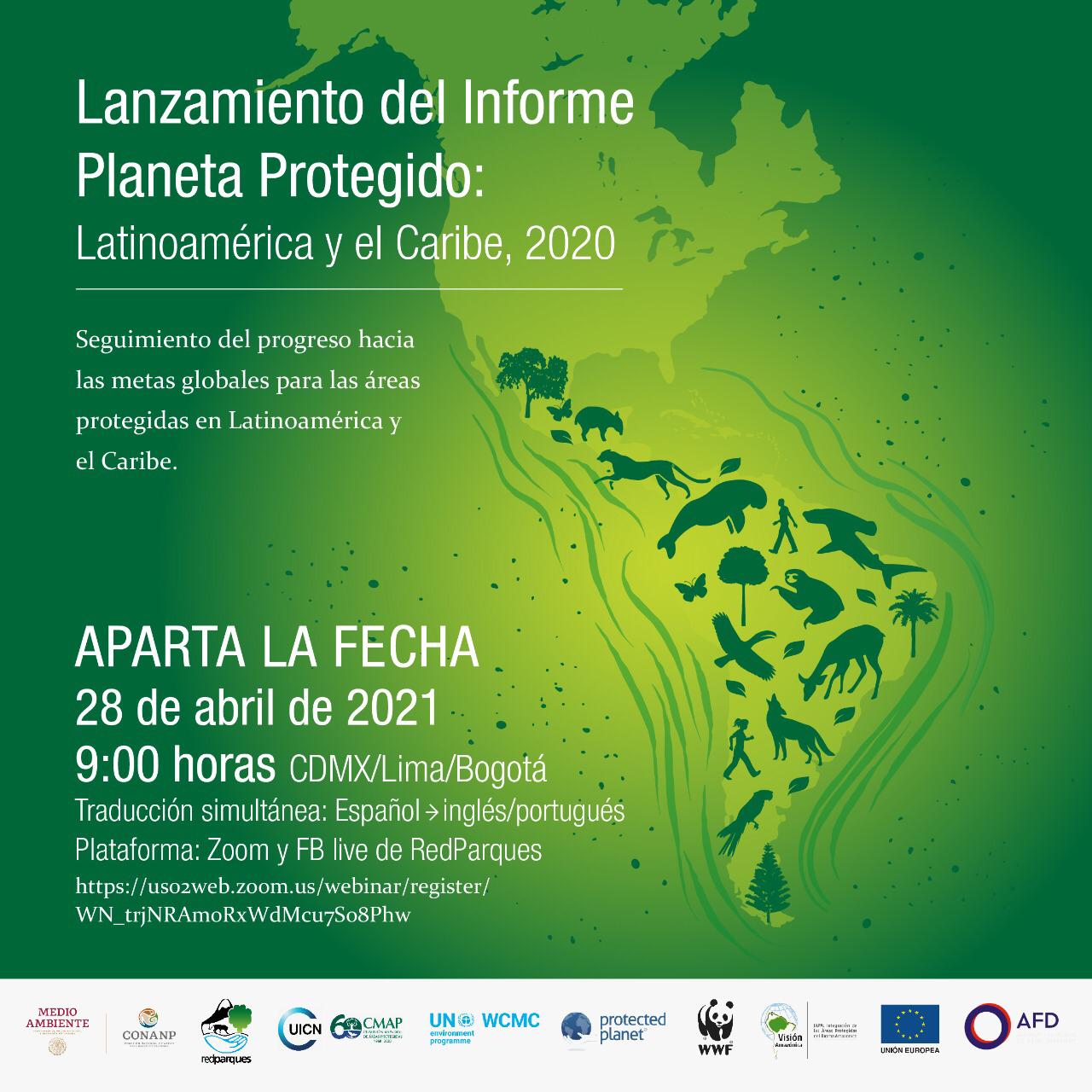 El lanzamiento del informe Planeta Protegido: Latinoamérica y el Caribe 2020 tendrá lugar el 28 de Abril a las 9:00hrs CDMX/Lima/Bogotá (GMT -5).