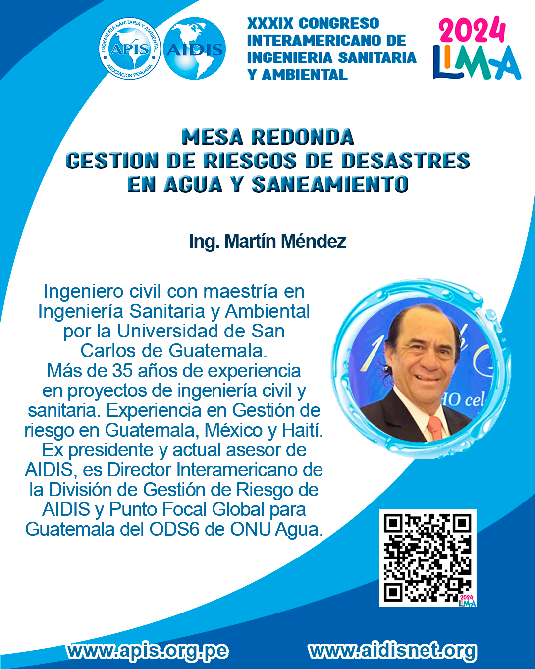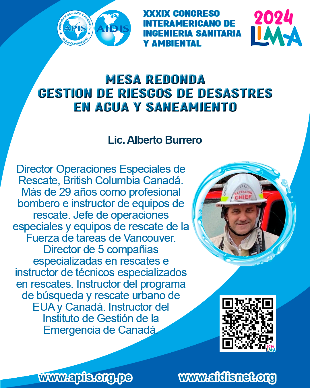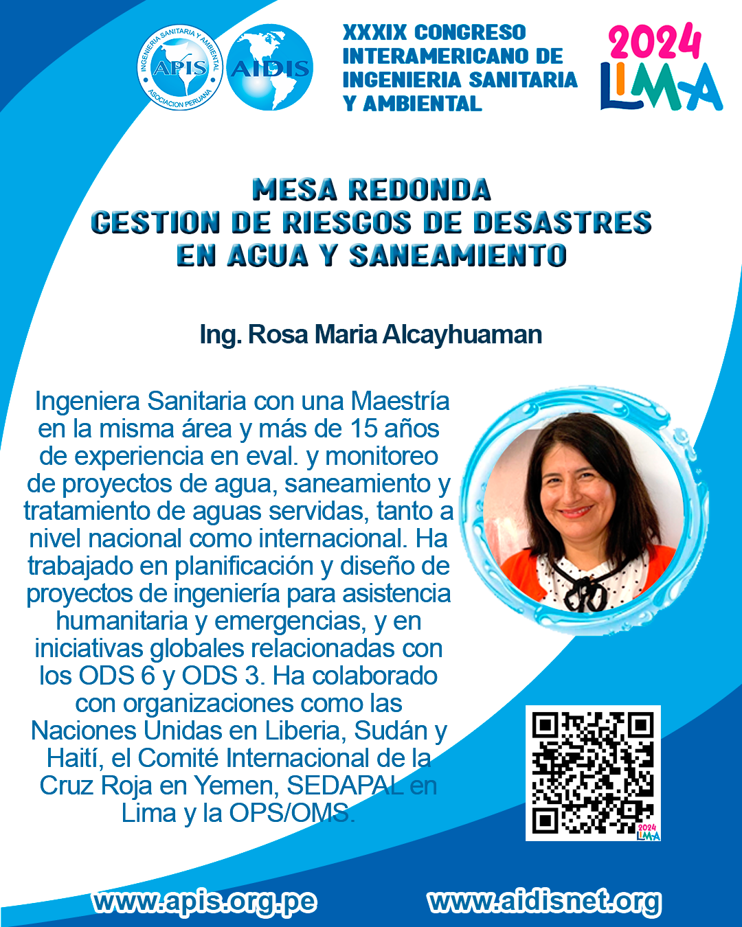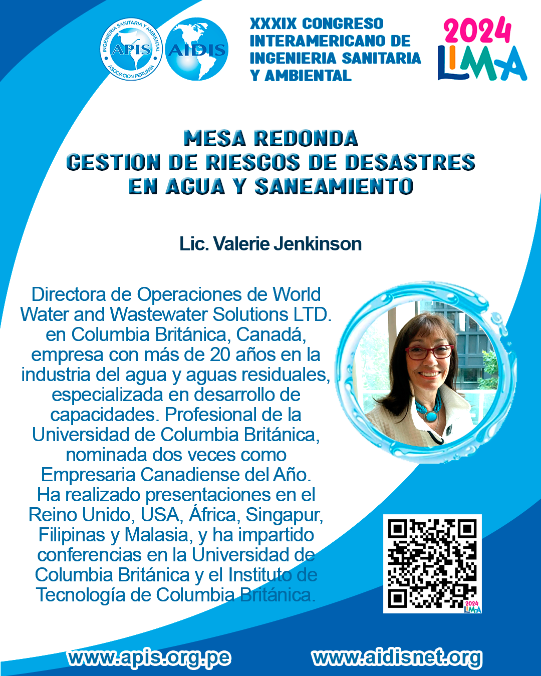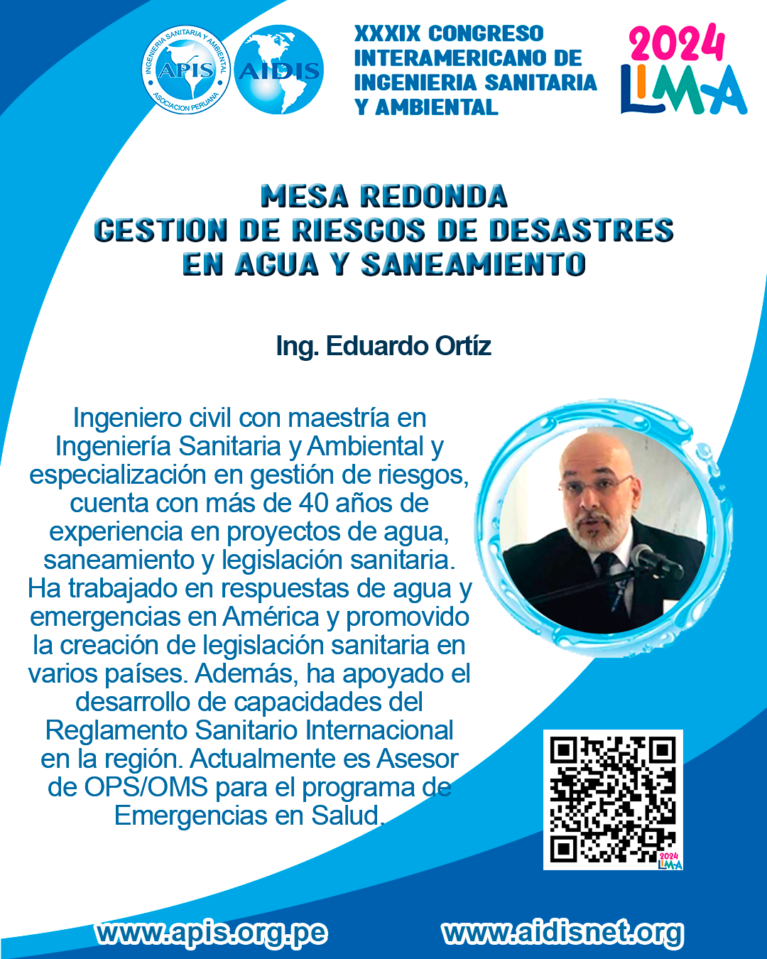 La Asociación Interamericana de Ingeniería Sanitaria y Ambiental (AIDIS) te invita a su XXXIX Congreso Interamericano, del 24 al 27 de noviembre de 2024 en Lima, Perú.