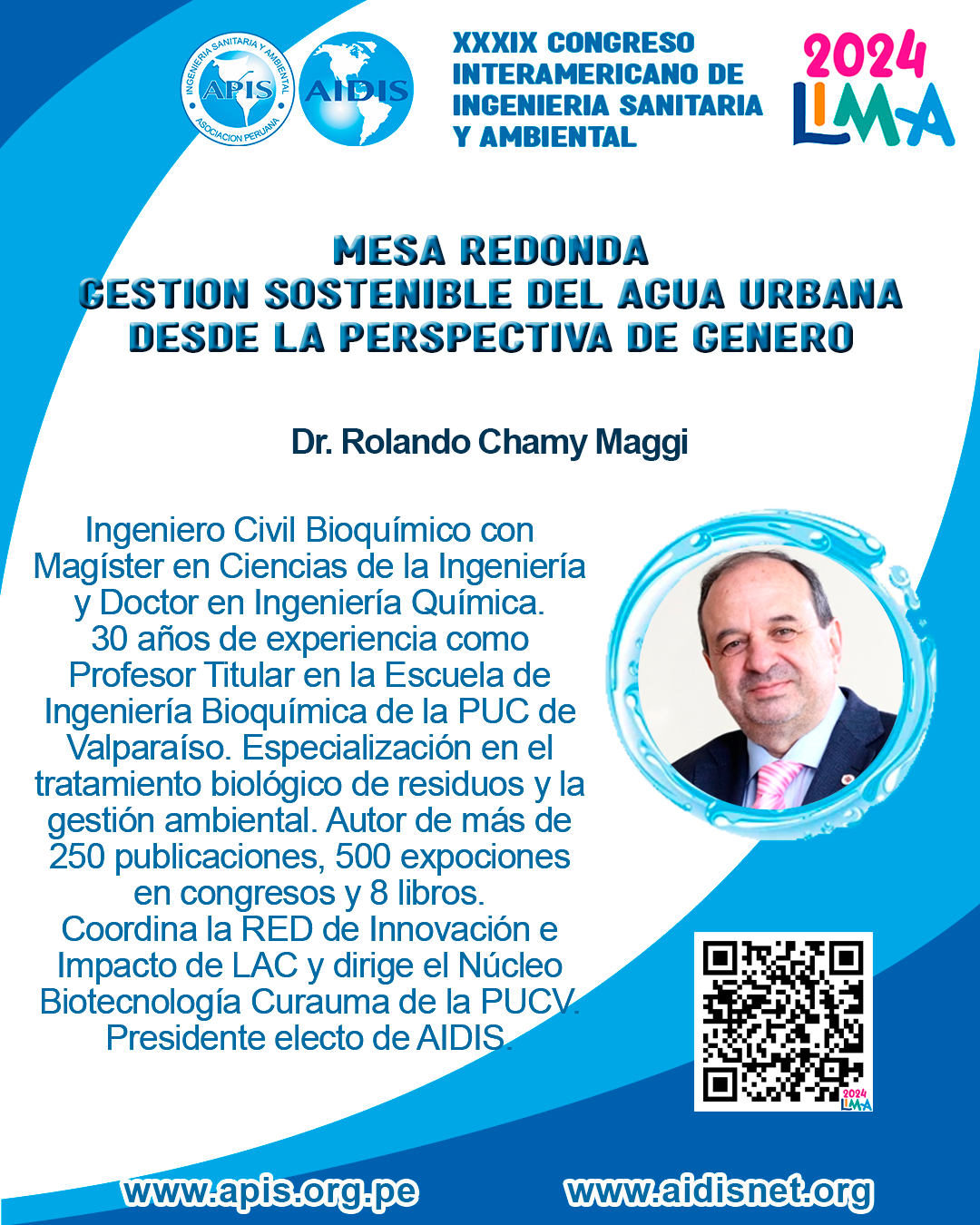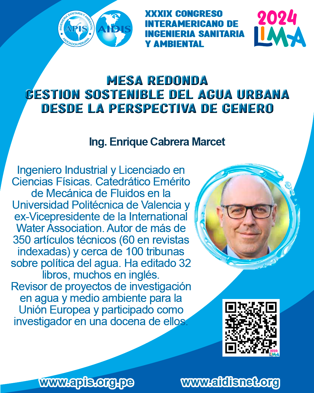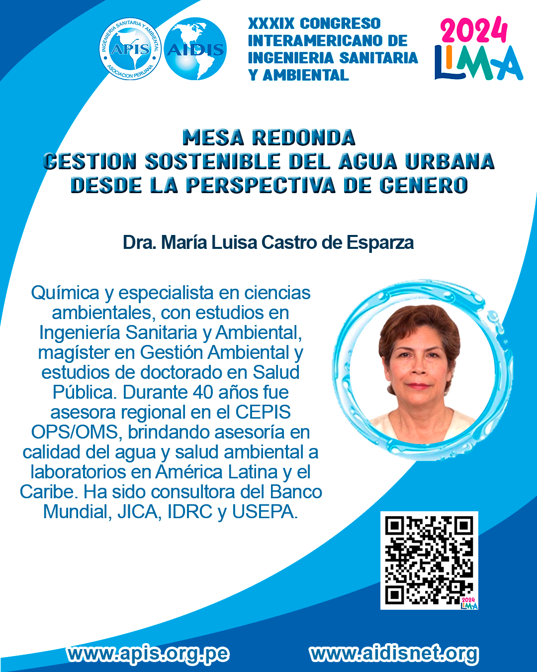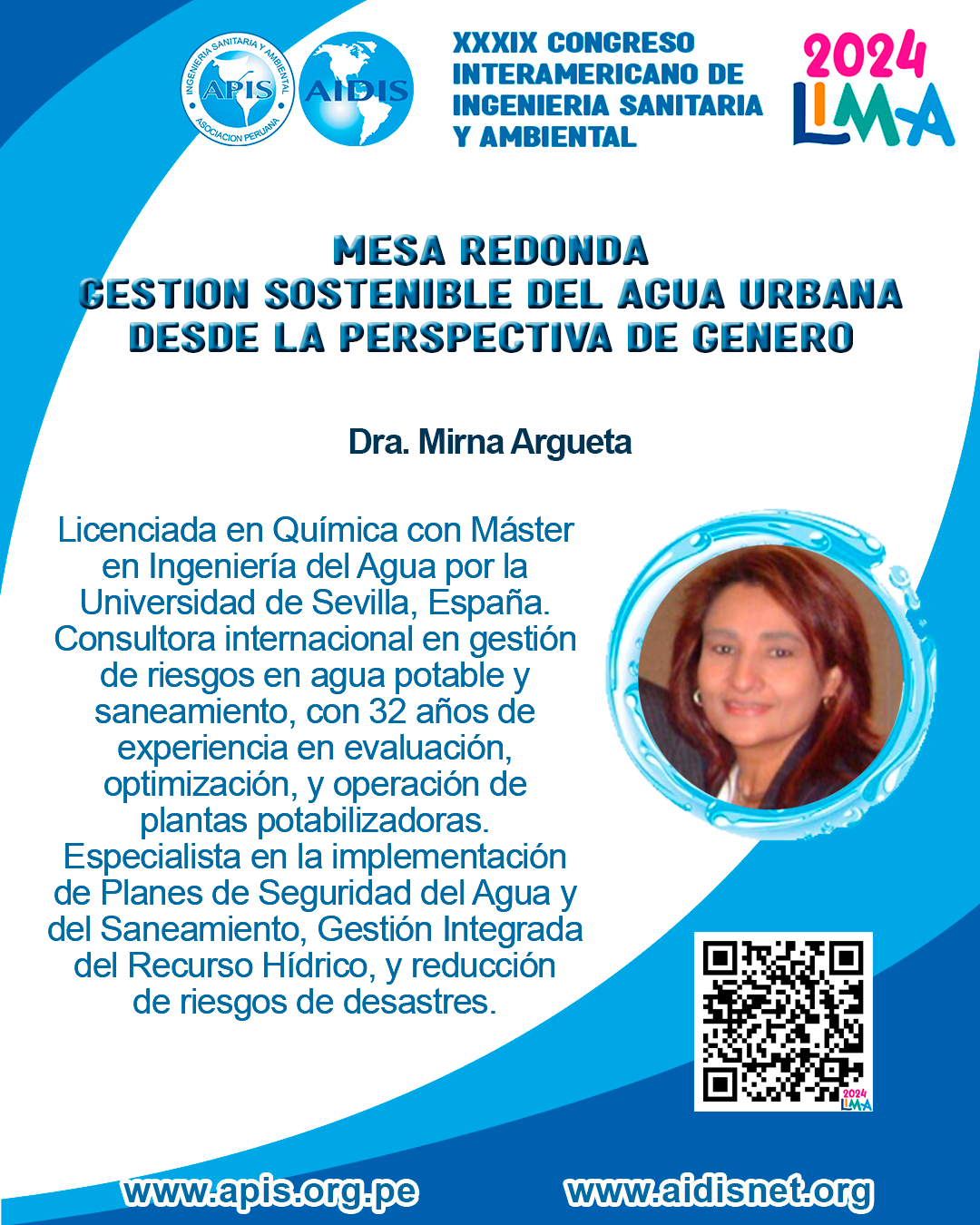 La Asociación Interamericana de Ingeniería Sanitaria y Ambiental (AIDIS) te invita a su XXXIX Congreso Interamericano, del 24 al 27 de noviembre de 2024 en Lima, Perú.