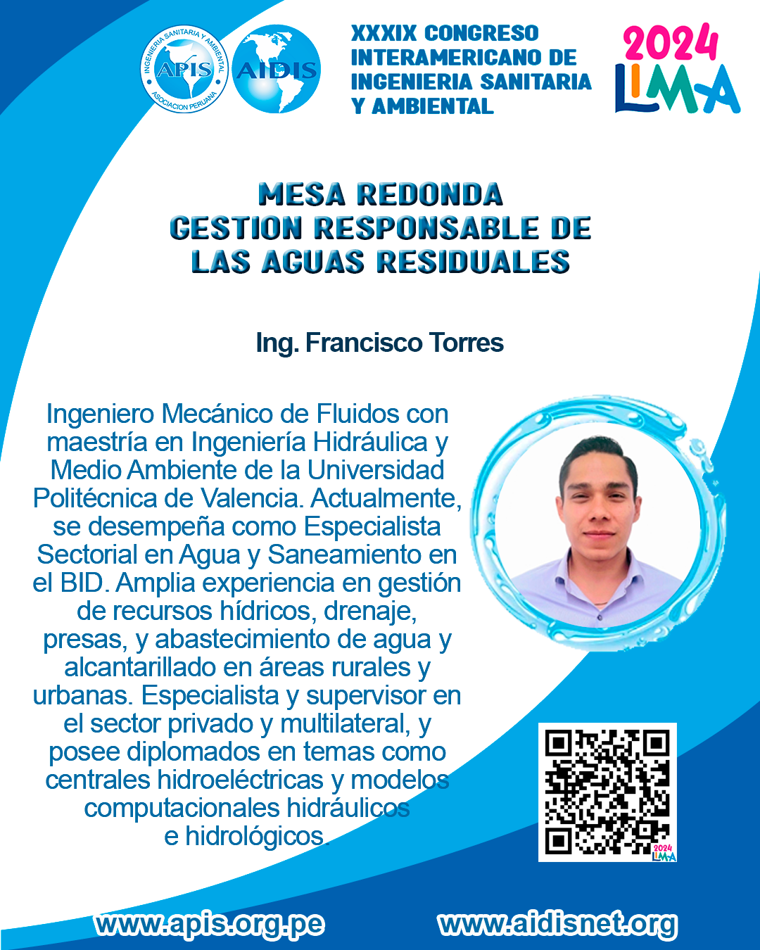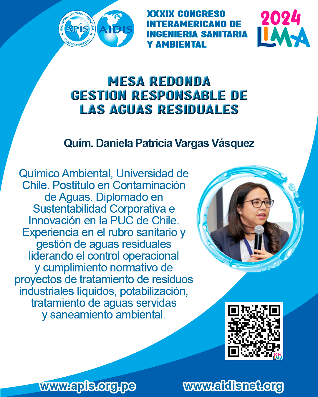 La Asociación Interamericana de Ingeniería Sanitaria y Ambiental (AIDIS) te invita a su XXXIX Congreso Interamericano, del 24 al 27 de noviembre de 2024 en Lima, Perú.