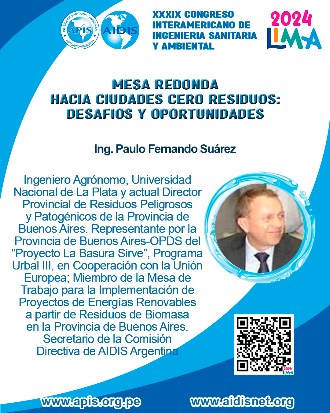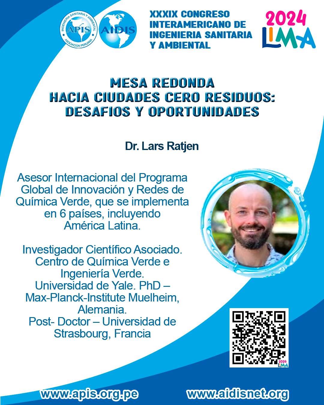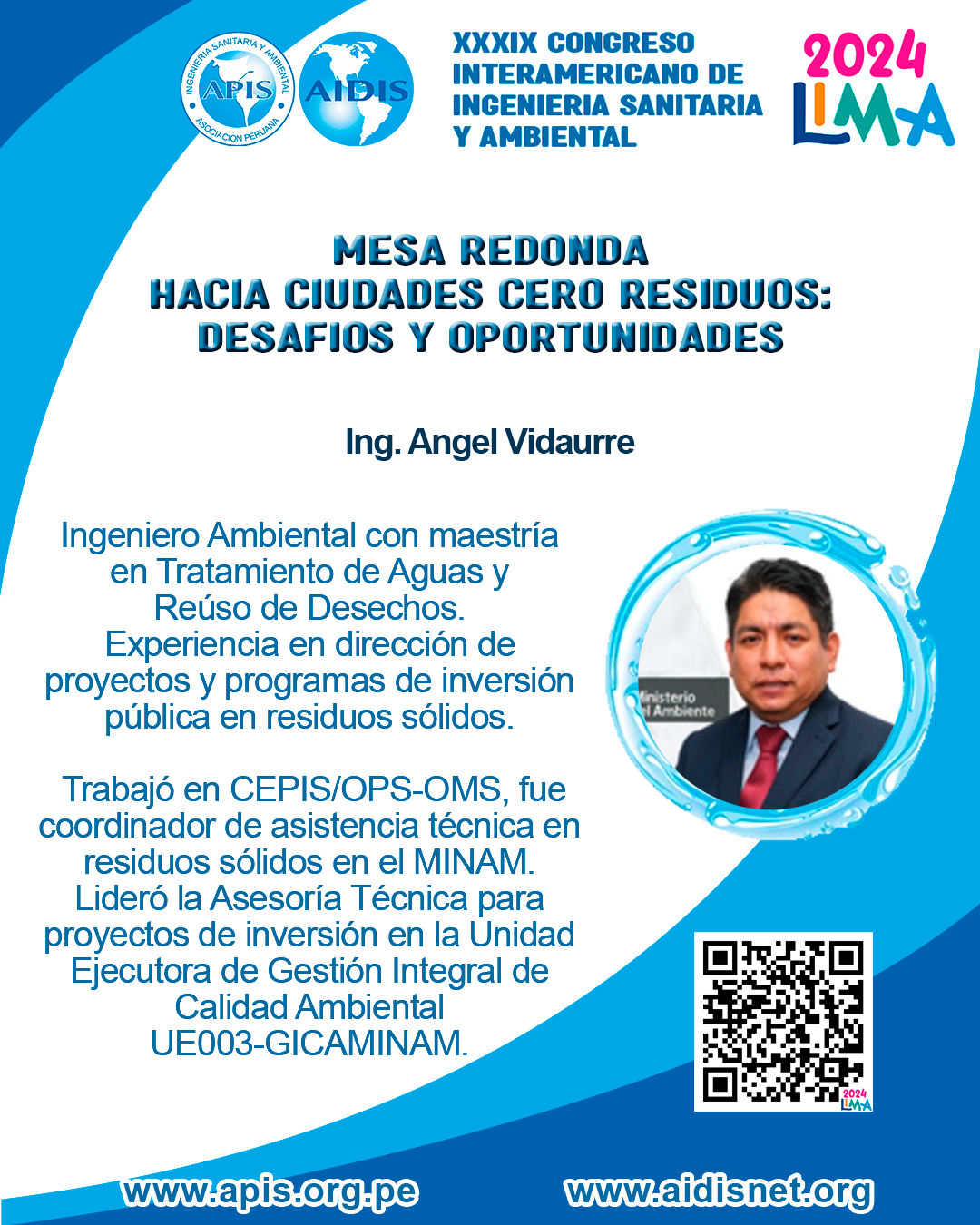La Asociación Interamericana de Ingeniería Sanitaria y Ambiental (AIDIS) te invita a su XXXIX Congreso Interamericano, del 24 al 27 de noviembre de 2024 en Lima, Perú.