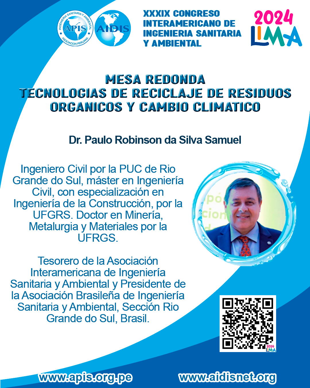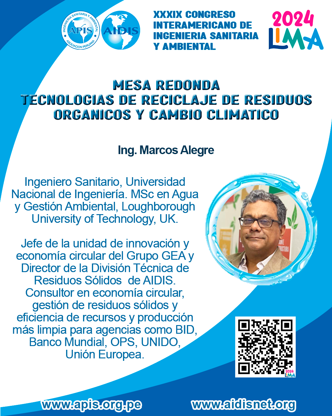 La Asociación Interamericana de Ingeniería Sanitaria y Ambiental (AIDIS) te invita a su XXXIX Congreso Interamericano, del 24 al 27 de noviembre de 2024 en Lima, Perú.