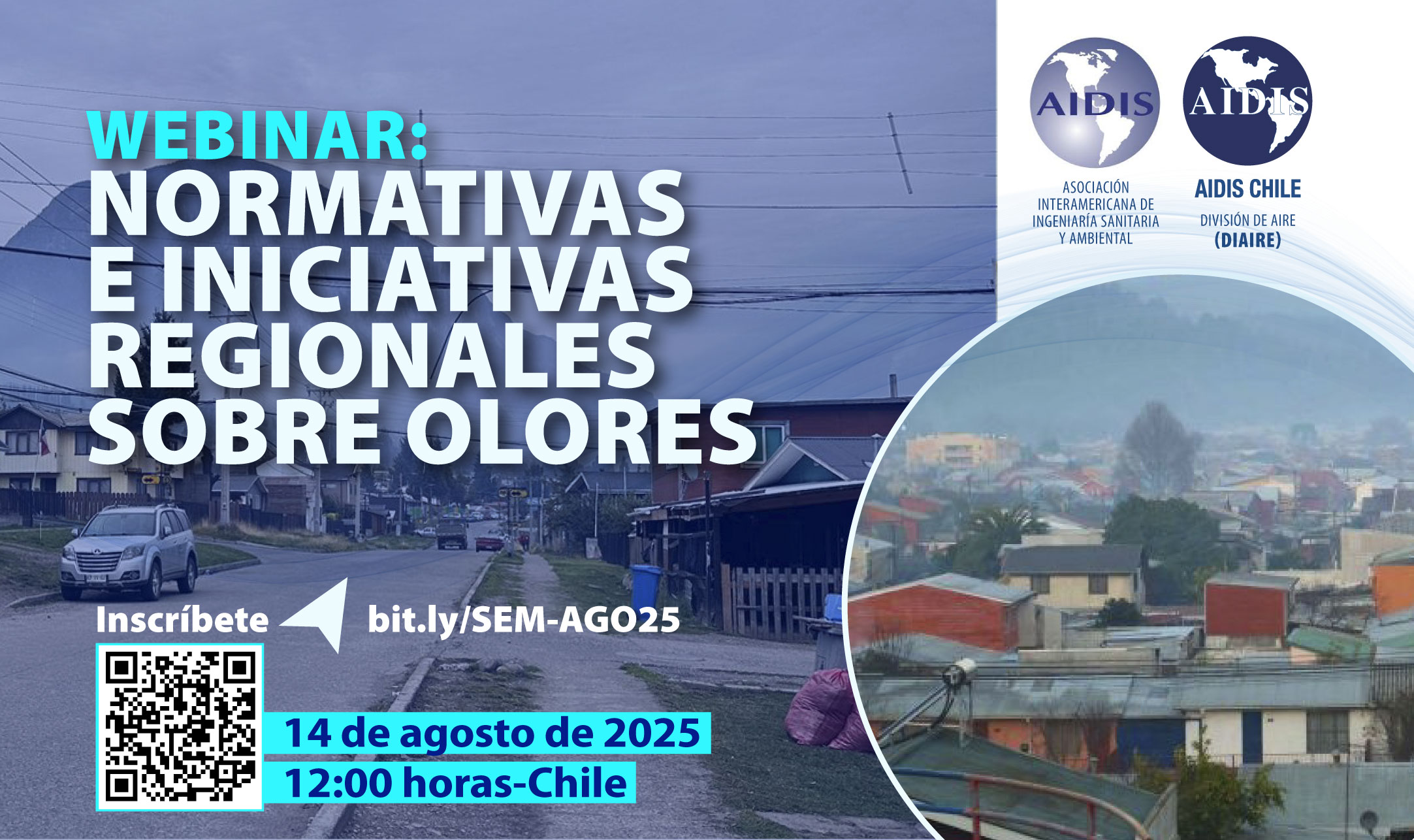 La División de Calidad del Aire (DIAIRE) de AIDIS Chile organiza el evento virtual “Normativas e Iniciativas Regionales sobre Olores”, que se realizará el jueves 14 de agosto de 2025 a las 12:00 horas (Chile) a través de la plataforma Zoom.