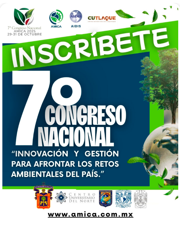 La Asociación Mexicana de Ingeniería, Ciencia y Gestión Ambiental A.C. (AMICA), en colaboración con AIDIS, convoca a estudiantes, profesionales, investigadores y actores del sector ambiental a ser parte del 7° Congreso Nacional AMICA 2025, un evento dedicado al análisis, la reflexión y la acción en torno a los desafíos ambientales que enfrentamos hoy.