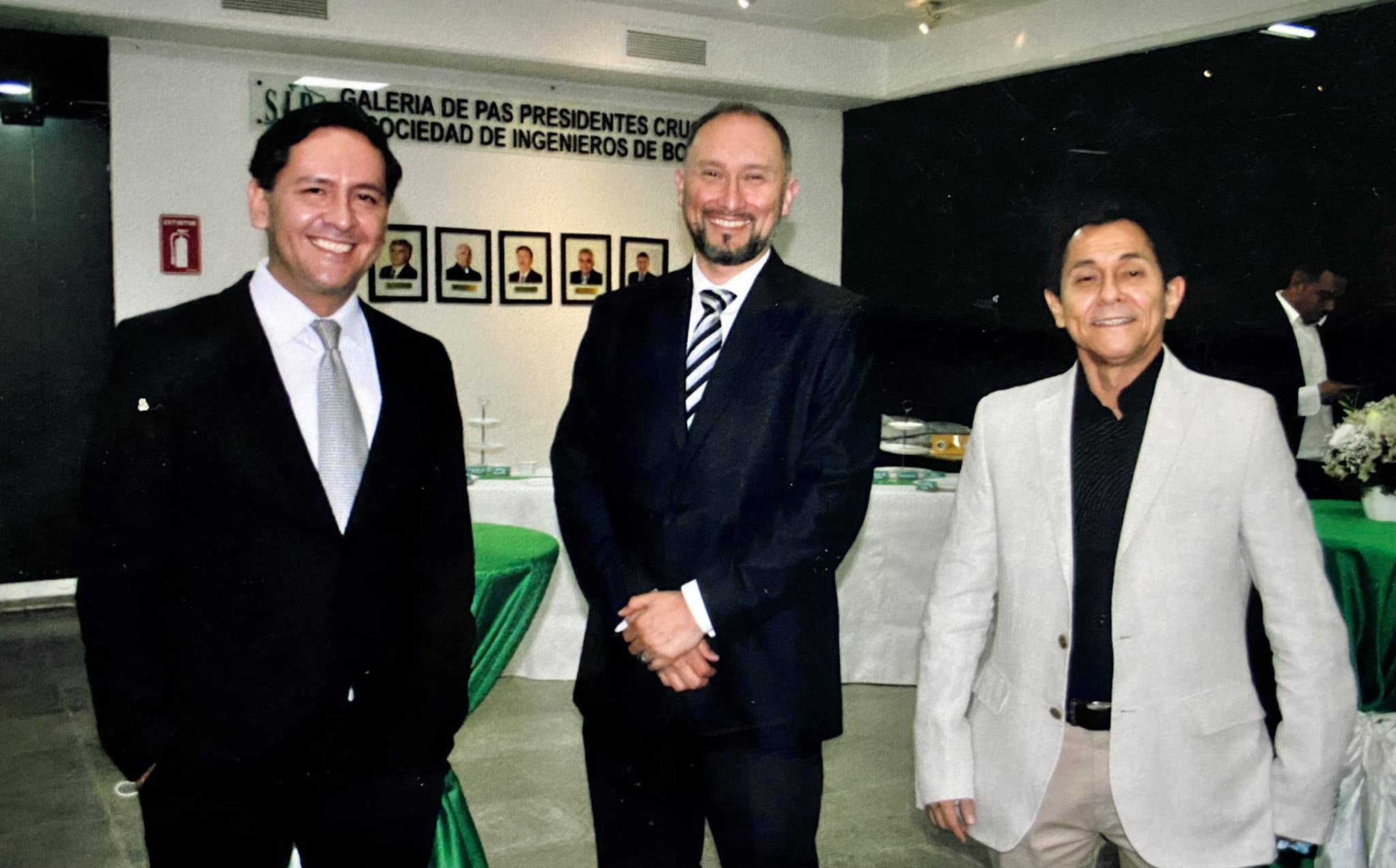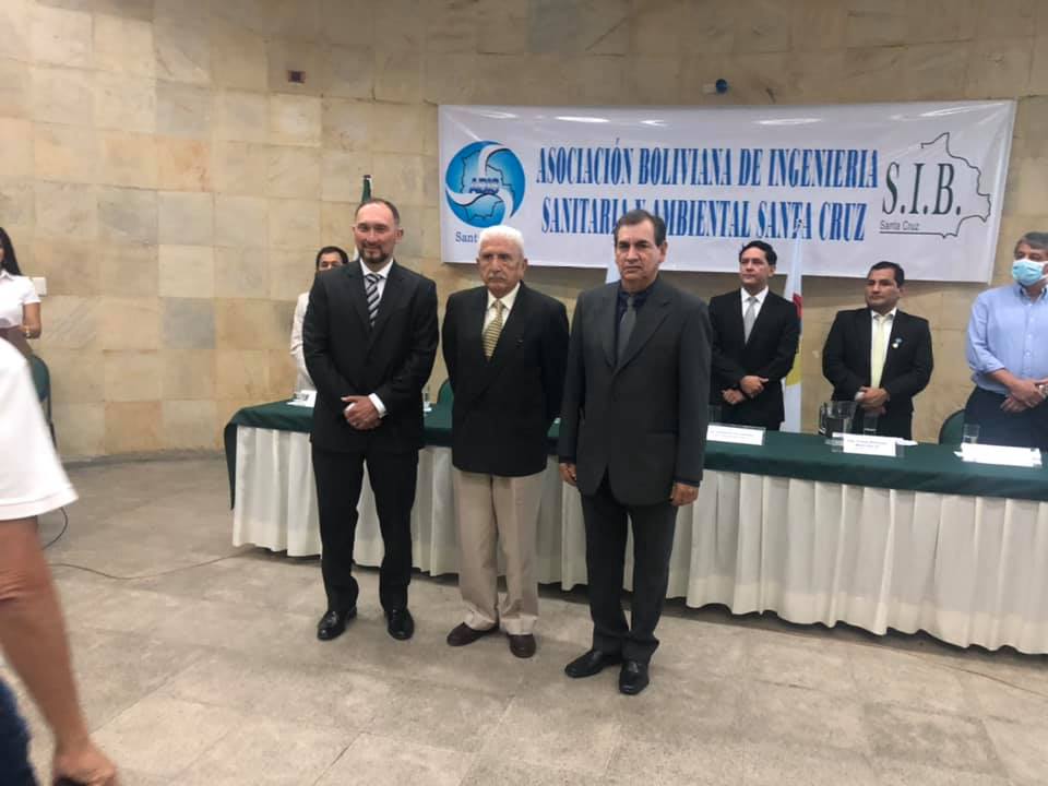 Ingeniero Esteban Leigue, Presidente de AIDIS, Ingeniero Cesar Vaca, miembro distinguido de AIDIS e Ingeniero Ronald Baldivieso, Vicepresidente de la Región III de AIDIS.