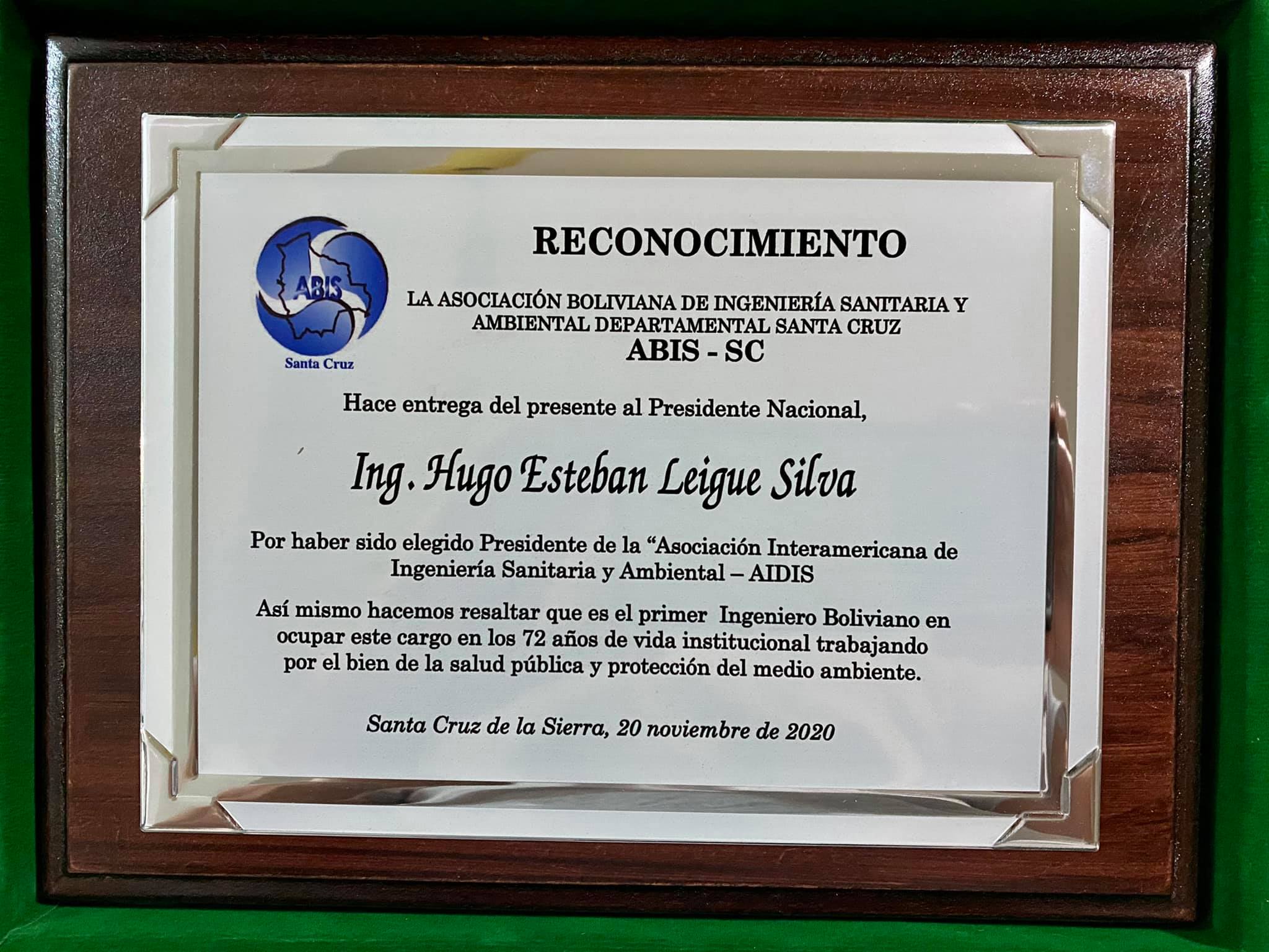 El Ingeniero Esteban Leigue es el primer presidente Boliviano de AIDIS Asociación Interamericana de Ingeniería Sanitaria y Ambiental.