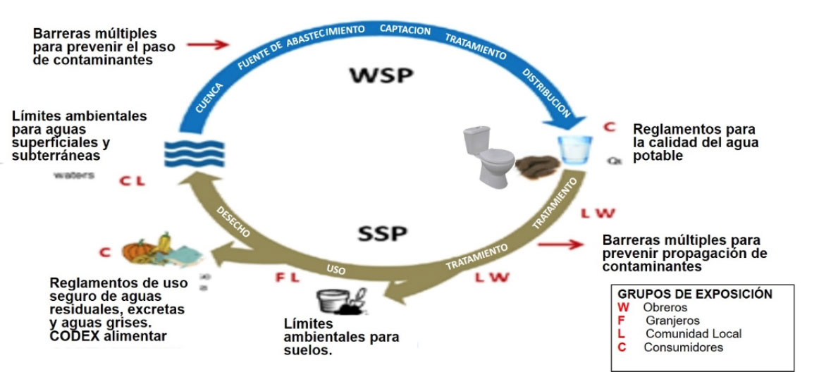 Se trata de “Cerrar el ciclo” para garantizar la seguridad sanitaria del suministro de agua y del saneamiento como lo muestra la figura a continuación: