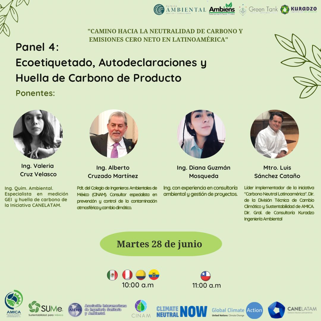4to. Panel: Ecoetiquetado, Autodeclaraciones y Huella de Carbono de Producto en el marco de los webinars “Camino hacia la neutralidad de carbono y emisiones cero neto en Latinoamérica”.