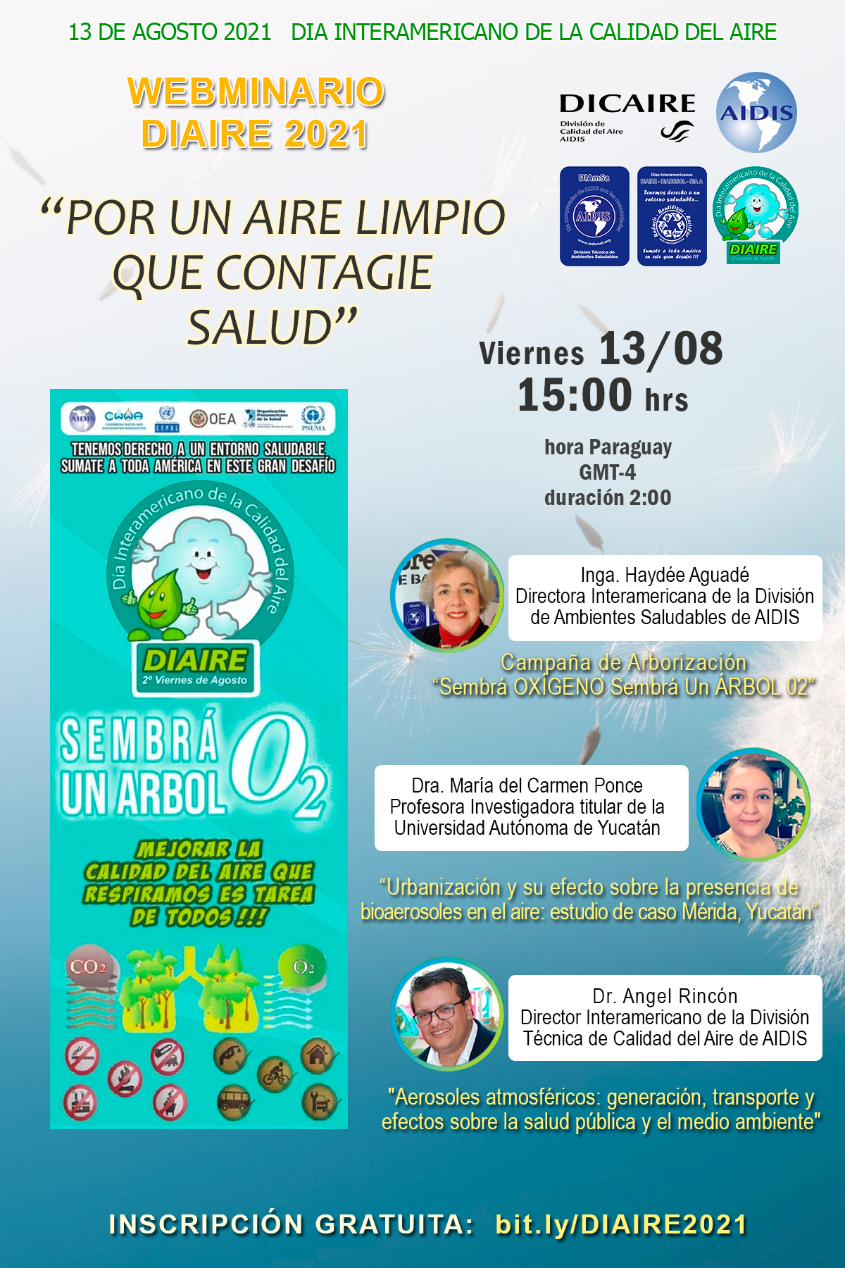 15:00-15:05 Apertura y presentación del WEBMINARIO DIAIRE 2021: “POR UN AIRE LIMPIO QUE CONTAGIE SALUD”